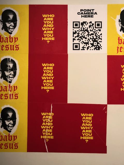 Example: The man has incorporated a QR code into his art–it shows up in the exhibition’s video, too. And where does that QR code lead? To his Instagram account, of course.