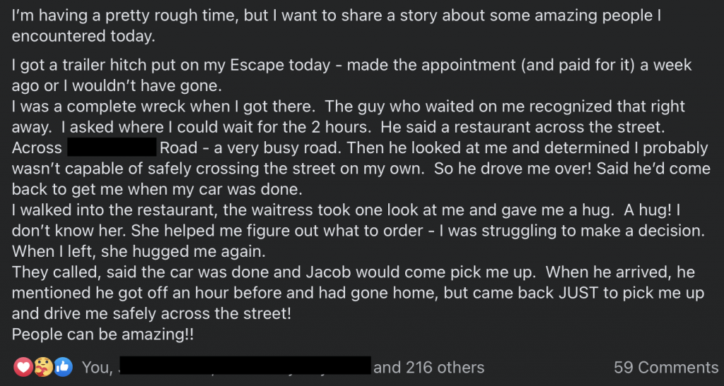Service industry workers, please don’t underestimate your impact. You just might change somebody’s world today. As we have said on here before, every person has a story.
